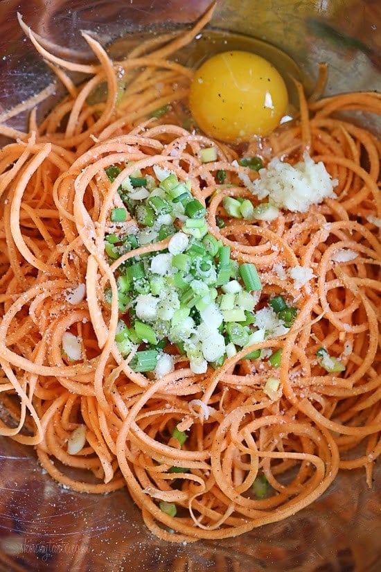 Spiralized Sweet Potato Latkes Recipe