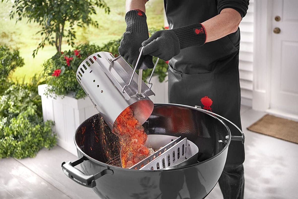 It’s no secret that charcoal is more time-consuming to get going than propane, but the Weber Rapidfire Chimney Starter will get your fuel burning in no time and still achieve that amazing smokey flavor This chimney starter comes in two sizes, and you just load in your briquettes, then use lighter cubes or newspaper to start a fire underneath it. In around 20 minutes, your hot charcoal will be ready to go, and you can pour it into your grill and start cooking.Â
