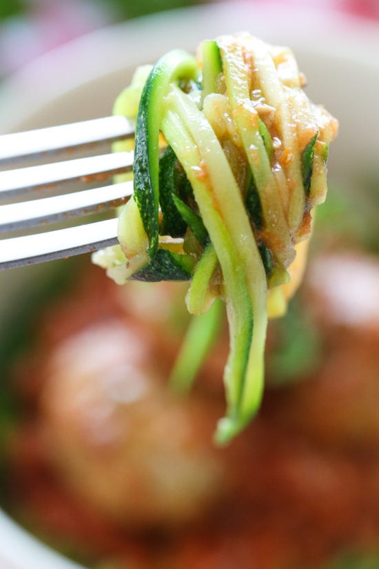 Zoodles and Meatballs (zucchini noodles with slow cooker turkey meatballs)